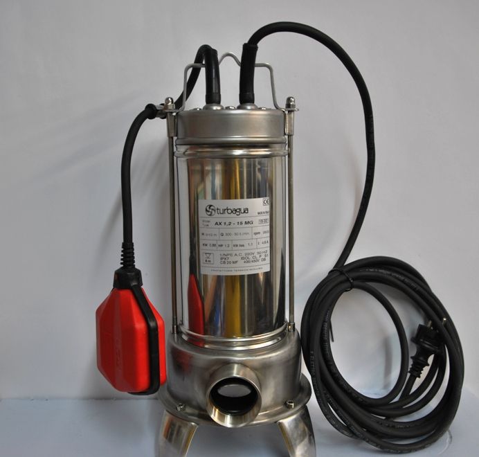 Cuerpo de bomba, pie de apoyo, impulsor, camisa exterior, soporte superior, asa transporte y tirantes en acero inox.